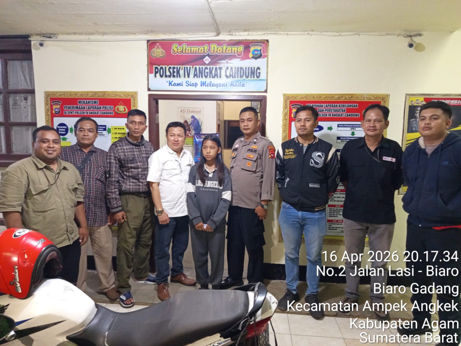 Setibanya tim didaerah Padang Sumatra Barat, kebetulan saya menerima laporan dari masyarakat yang dimana telah ditemukan anak dibawah umur terlantar di Padang Sumatera Barat dan sudah diamankan pihak aparat penegak hukum (APH) Polsek IV Angkat Candung pada tanggal 16 April 2026.