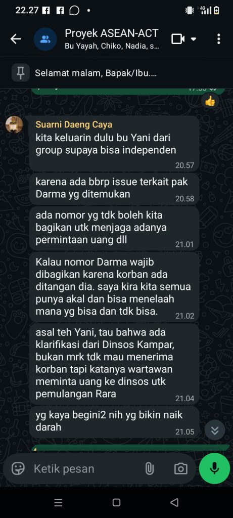 Saya kaget mendapati laporan dari anggota saya Darma. Ketua kenapa jadi ramai begini, sampai – sampai kami dilaporkan ke Bareskrim mabes polri katanya kasus TPPO”, ucap Darma.