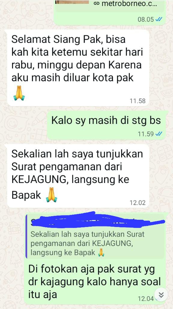 Snoko ( Pelaksana ) menyampaikan melalui pesan singkat agar para awak media bertemu dengan tujuan untuk menyampaikan bahwa KEJAGUNG ( Kejaksaan Agung ) Sebagai Pengaman pada proyek Revitalisasi Sekolah Dasar Negeri 46 Tabau “Sekalian lah saya tunjukkan Surat pengamanan dari KEJAGUNG, langsung ke Bapak (Wartawan)”, pesan Snoko melalui Whatsaap miliknya pada sabtu 6/12/2025.